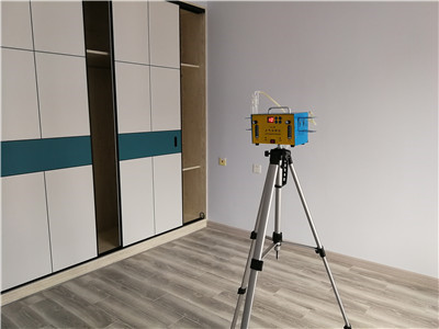 新房為高層頂樓,有閣樓。新房裝修已通風半年,入住前進行室內(nèi)空氣檢測,共設置6個檢測點。
